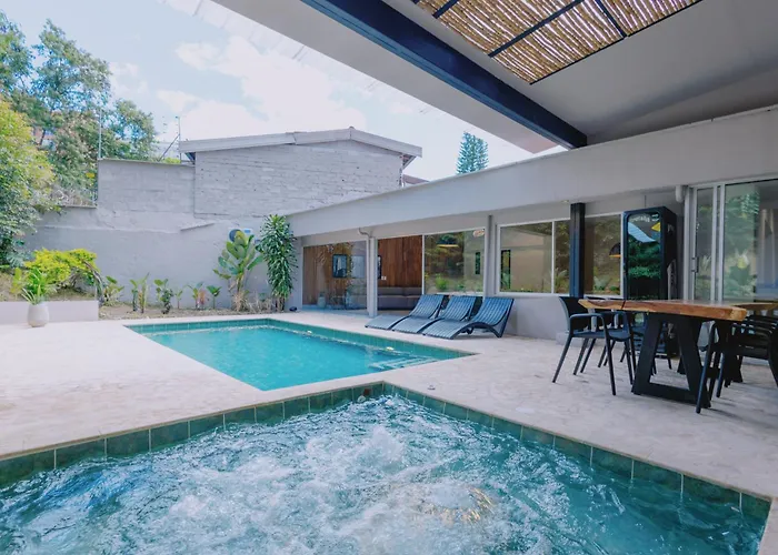Located about 600 metres from Los Balsos II, Casa Palma Villa Medellin provides a private swimming pool, a hot tub for a more relaxing experience. Featuring a terrace, this Medellin villa is situated nearly 25 minutes' walk from the Parroquia la Niña María.